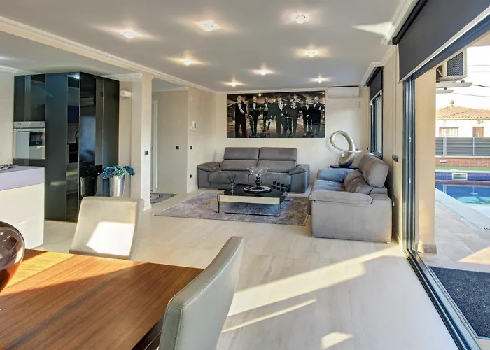 La Villa Rioja With Pool & Mountain And Sea View, Only Familys también dispone una cocina bien equipada equipada con lavaplatos, nevera y un horno. El Reno se encuentra a un corto paseo de esta villa. El aeropuerto Gerona está ubicado a 35 km del alojamiento. Los huéspedes pueden disfrutar de un jacuzzi, así como de una piscina exterior.